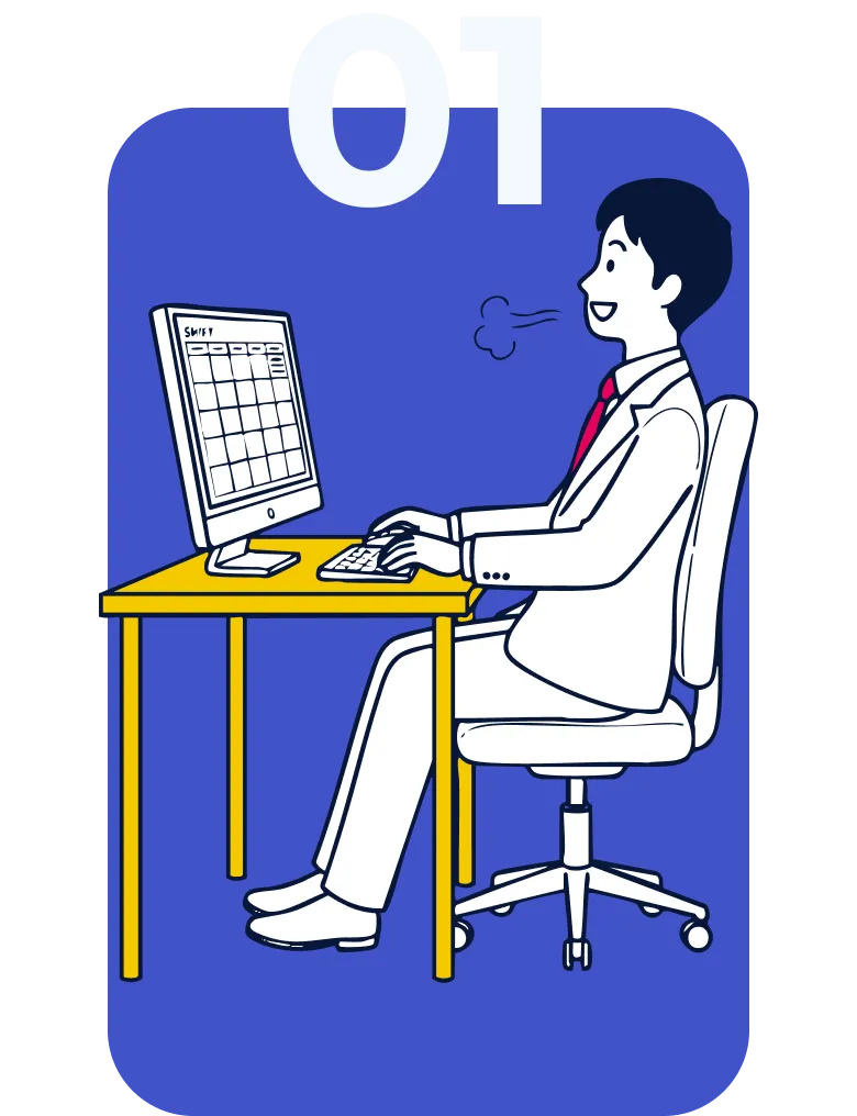 マウスクリック中心の操作でシフトを作成できるので、作業時間を最大90%短縮できます。